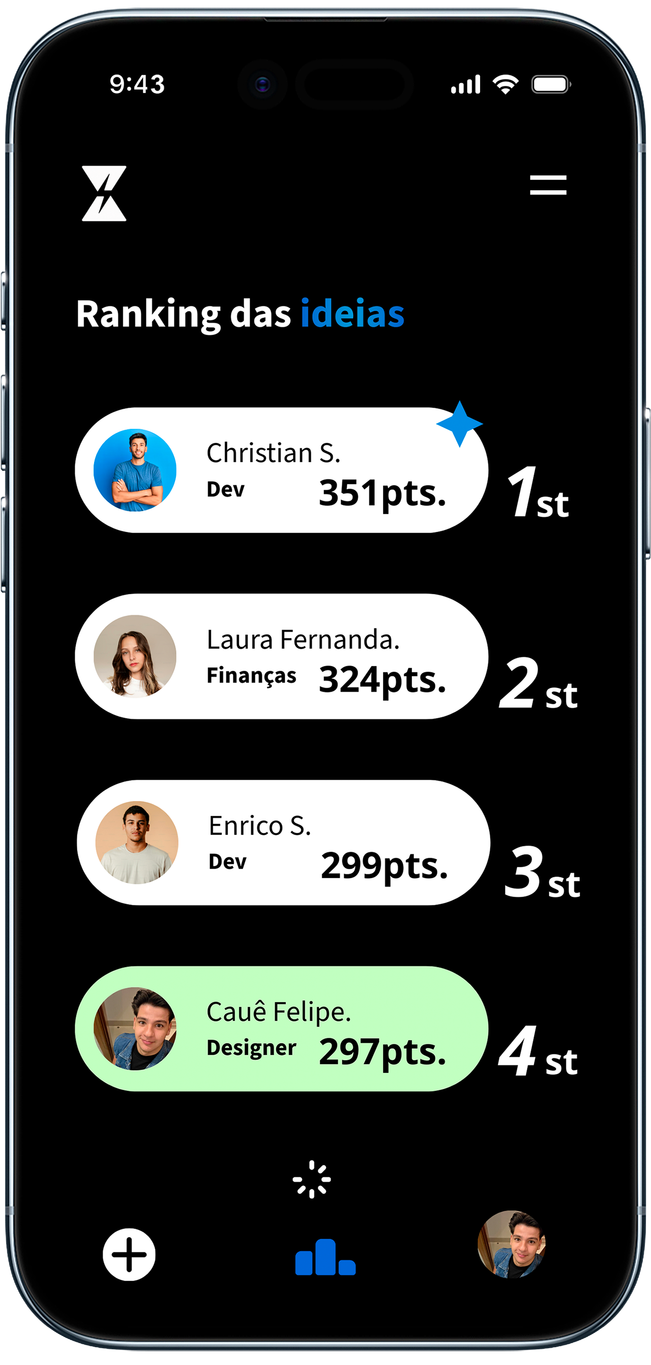 A Hupp transforma participação em reconhecimento. O ranking mostra quem mais contribui, cria, comenta e ajuda a empresa a evoluir. É uma forma leve e motivadora de incentivar a criatividade no dia a dia.